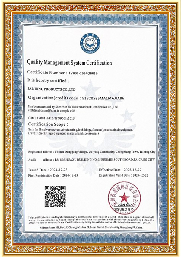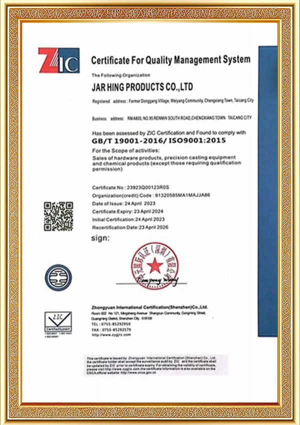 Jar Hing Products Co., Ltd. เป็นซัพพลายเออร์ทางอุตสาหกรรมที่ได้รับการรับรองมาตรฐาน ISO และน่าเชื่อถือซึ่งนำเสนอการหล่อที่แม่นยำชิ้นส่วนและบริการสำหรับผู้ที่ต้องการชิ้นส่วนที่มีความแม่นยำ โดยเฉพาะในอุตสาหกรรมยานยนต์ การก่อสร้าง เฟอร์นิเจอร์ การแพทย์ อุตสาหกรรมอาหาร ไฟฟ้า และอุตสาหกรรมพลังงานรีไซเคิล ฯลฯ ด้วยประสบการณ์ 14 ปี